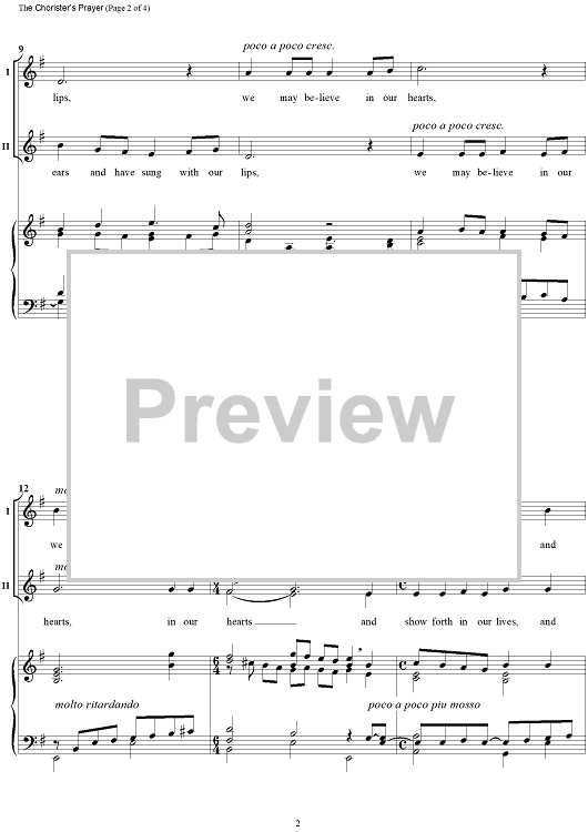 Digital Sheet Music for The Chorister's Prayer - Vocal Score by Valerie Shields scored for Voice(s) and organ or string quartet; id:469088