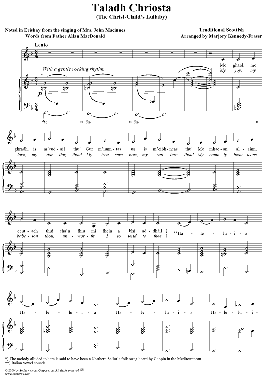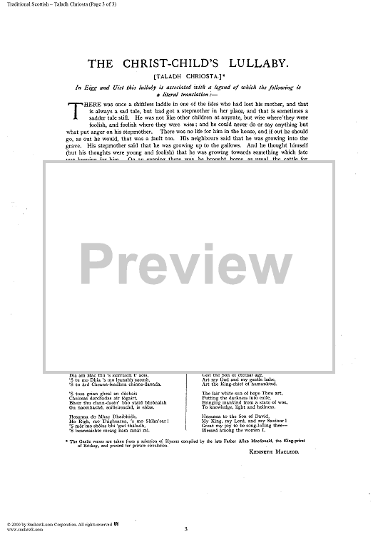 Digital Sheet Music for The Christ-Child's Lullaby by Marjory Kennedy-Fraser, Traditional scored for Piano/Vocal; id:235388