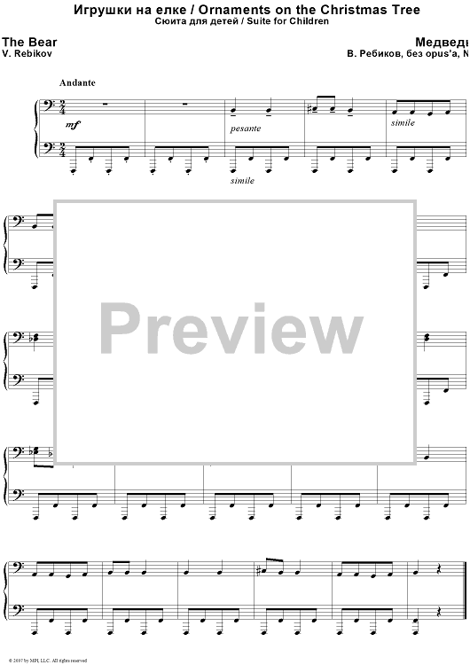 Digital Sheet Music for The Christmas Gift. 4. The Bear by , Vladimir Rebikov scored for Piano Solo; id:364280