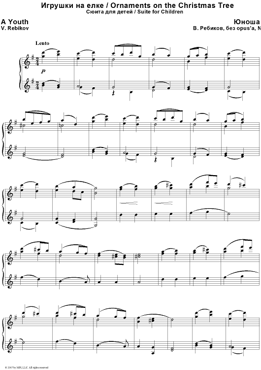"The Christmas Gift. 6. A Youth" Sheet Music by Vladimir Rebikov