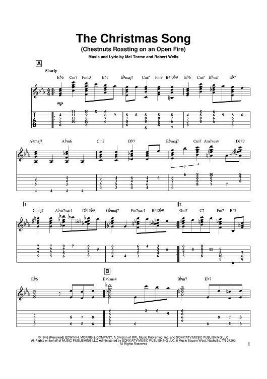 Digital Sheet Music for The Christmas Song (Chestnuts Roasting On An Open Fire) by Mel Torme, Robert Wells, Jeff Arnold scored for Guitar Tab; id:402197