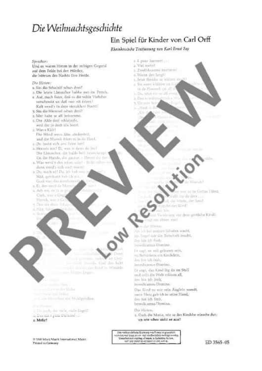 Digital Sheet Music for The Christmas Story by Carl Orff, Gunild Keetman scored for Children's Choir (smeza) With Sollists, Speakers And Instruments; id:472870