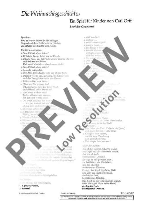 "The Christmas Story" Sheet Music by Carl Orff