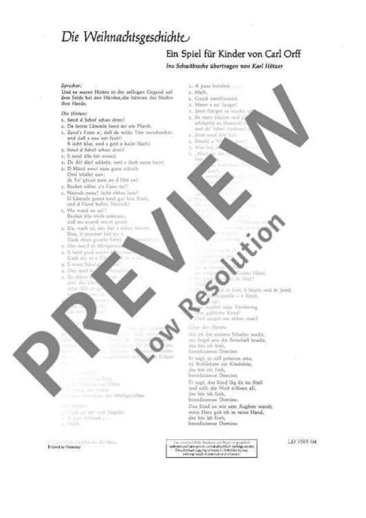 Digital Sheet Music for The Christmas Story by Carl Orff, Gunild Keetman scored for Children's Choir (smeza) With Sollists, Speakers And Instruments; id:483959