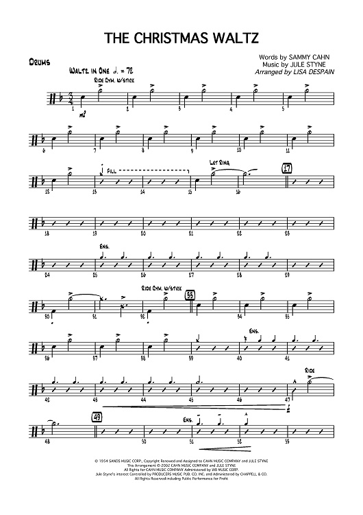 Digital Sheet Music for The Christmas Waltz - Drums by Jule Styne, Sammy Cahn, Lisa DeSpain scored for Jazz Ensemble; id:358575