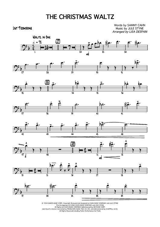 Digital Sheet Music for The Christmas Waltz - Trombone 1 by Jule Styne, Sammy Cahn, Lisa DeSpain scored for Jazz Ensemble; id:358567