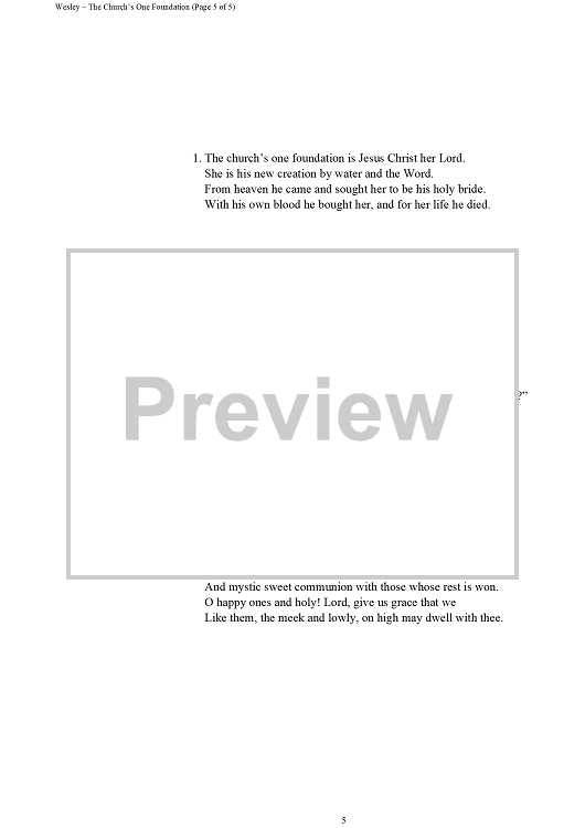"The Church's One Foundation" Sheet Music by Samuel Sebastian Wesley