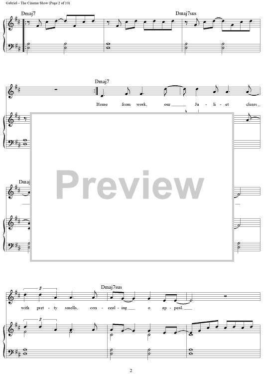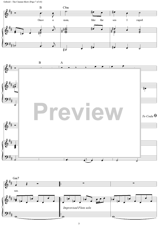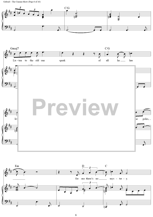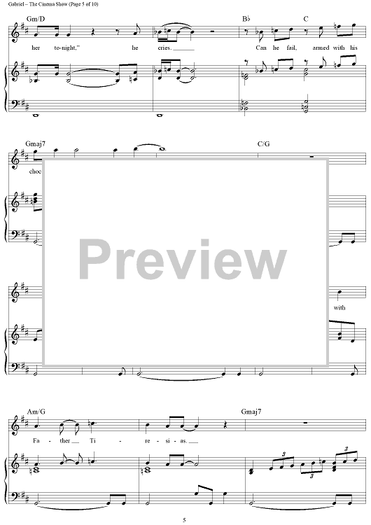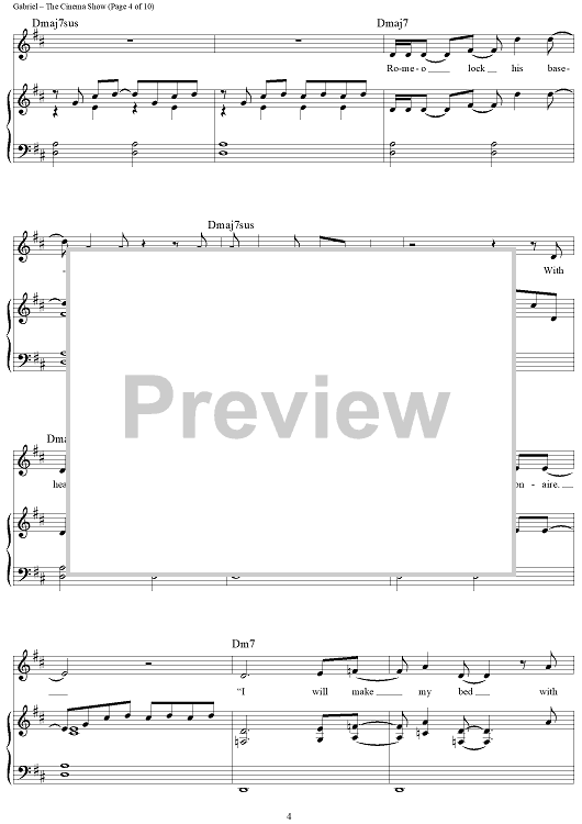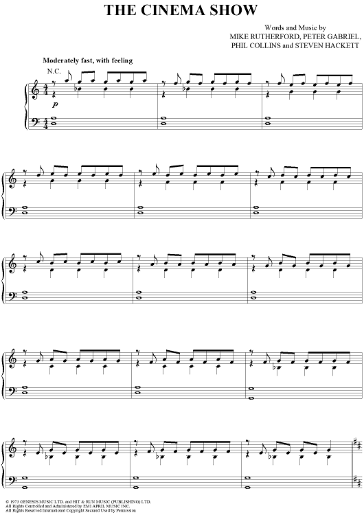 Digital Sheet Music for The Cinema Show by Genesis, Mike Rutherford, Steve Hackett, Phil Collins, Peter Gabriel scored for Piano/Vocal/Chords; id:411455