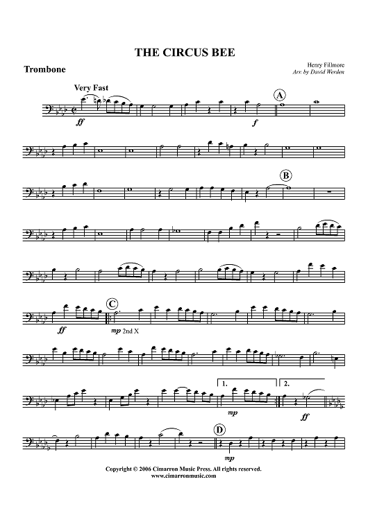 Digital Sheet Music for The Circus Bee - Trombone by Henry Fillmore, David Werden scored for Brass Quintet; id:357847