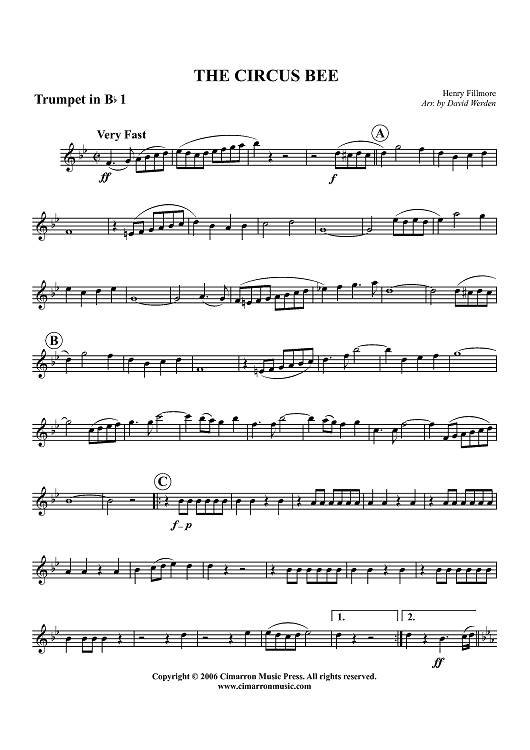 "The Circus Bee - Trumpet 1 in B-flat" Sheet Music by Henry Fillmore