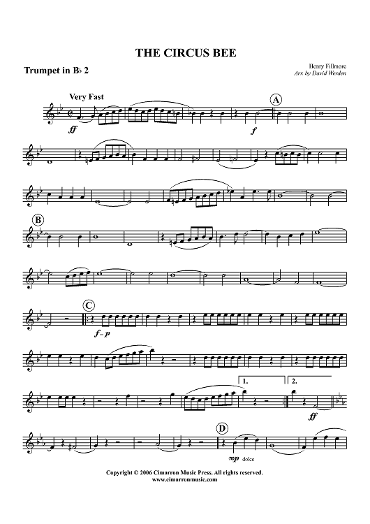 "The Circus Bee - Trumpet 2 in B-flat" Sheet Music by Henry Fillmore