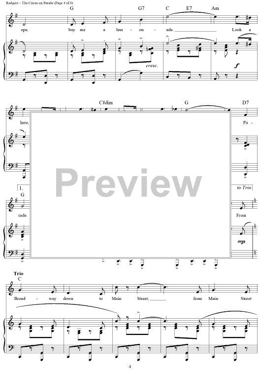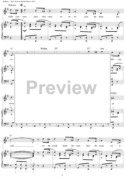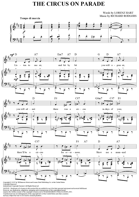 Digital Sheet Music for The Circus is on Parade by Richard Rodgers, Lorenz Hart scored for Piano/Vocal/Chords; id:355966