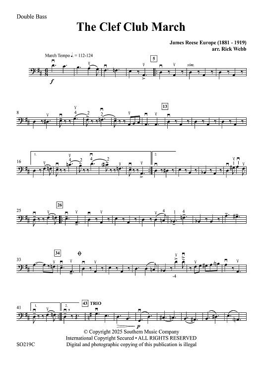 "The Clef Club March - Double Bass" Sheet Music by James Reese Europe