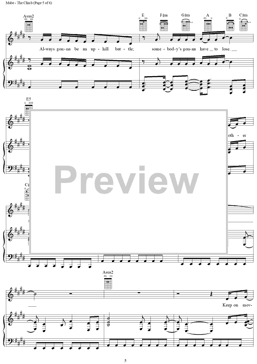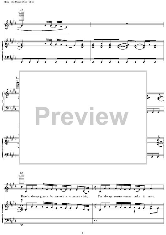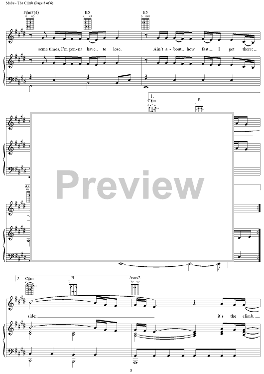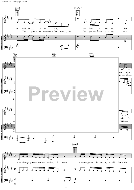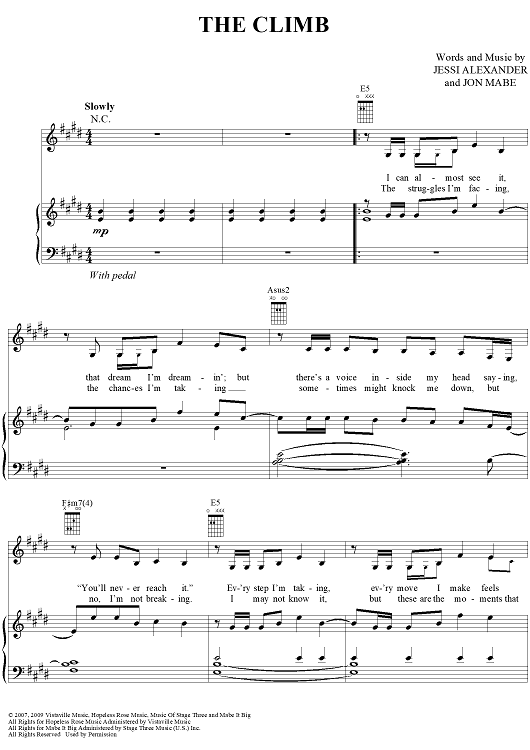 Digital Sheet Music for The Climb by Miley Cyrus, Jessi Alexander, Jon Mabe scored for Piano/Vocal/Chords; id:404558