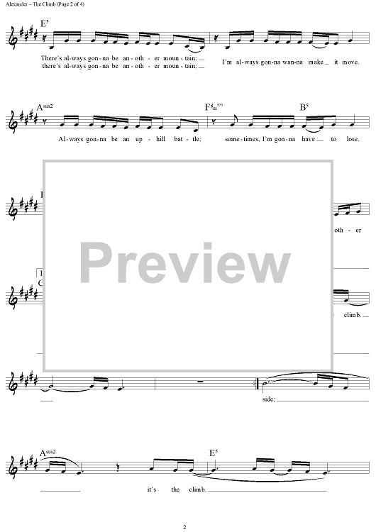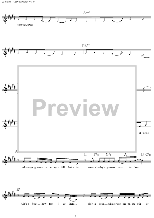 Digital Sheet Music for The Climb by Miley Cyrus, Jessi Alexander, Jon Mabe scored for Lead Sheet; id:440132