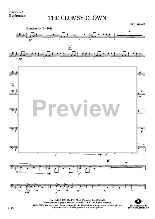 "The Clumsy Clown - Baritone/Euphonium" Sheet Music by Neil Simon