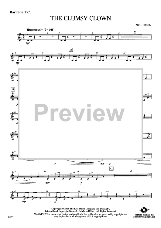 Digital Sheet Music for The Clumsy Clown - Baritone TC by Neil Simon scored for Concert Band; id:439216