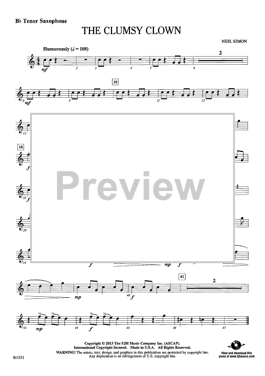 "The Clumsy Clown - Bb Tenor Sax" Sheet Music by Neil Simon