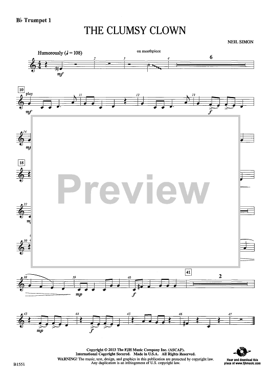 "The Clumsy Clown - Bb Trumpet 1" Sheet Music by Neil Simon