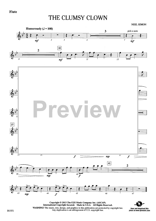 Digital Sheet Music for The Clumsy Clown - Flute by Neil Simon scored for Concert Band; id:439202