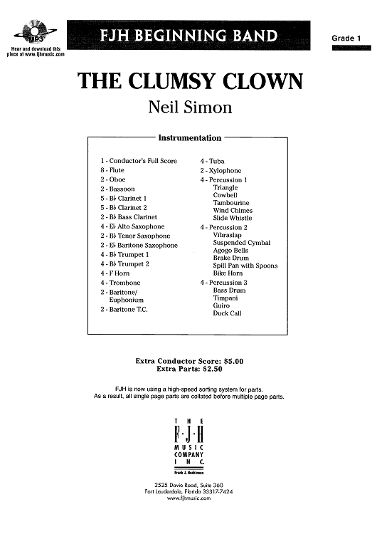 Digital Sheet Music for The Clumsy Clown - Score Cover by Neil Simon scored for Concert Band; id:439201