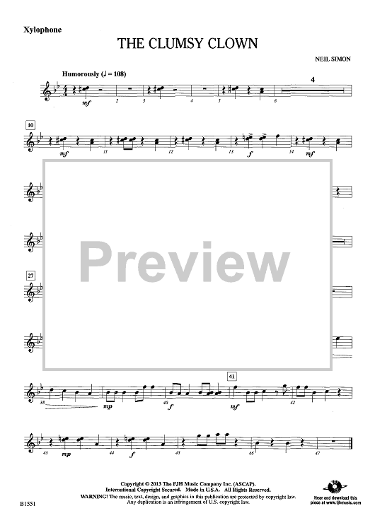 "The Clumsy Clown - Xylophone" Sheet Music by Neil Simon
