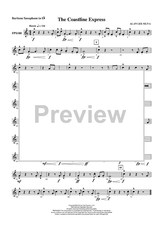 Digital Sheet Music for The Coastline Express - Baritone Sax by Alan Lee Silva scored for Concert Band; id:430986