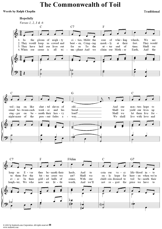 Digital Sheet Music for The Commonwealth of Toil by Ralph Chaplin, Traditional scored for Piano/Vocal/Chords; id:260834