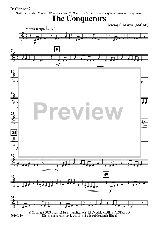 "The Conquerors - Bb Clarinet 2" Sheet Music by Jeremy S. Martin