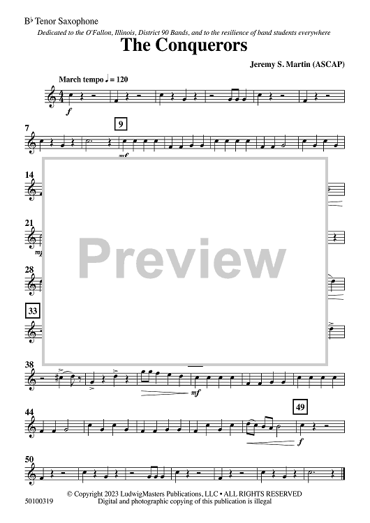 Digital Sheet Music for The Conquerors - Bb Tenor Saxophone by Jeremy S. Martin scored for Concert Band; id:509778