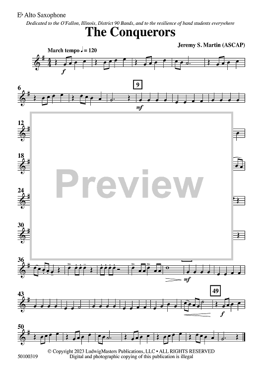 Digital Sheet Music for The Conquerors - Eb Alto Saxophone by Jeremy S. Martin scored for Concert Band; id:509777