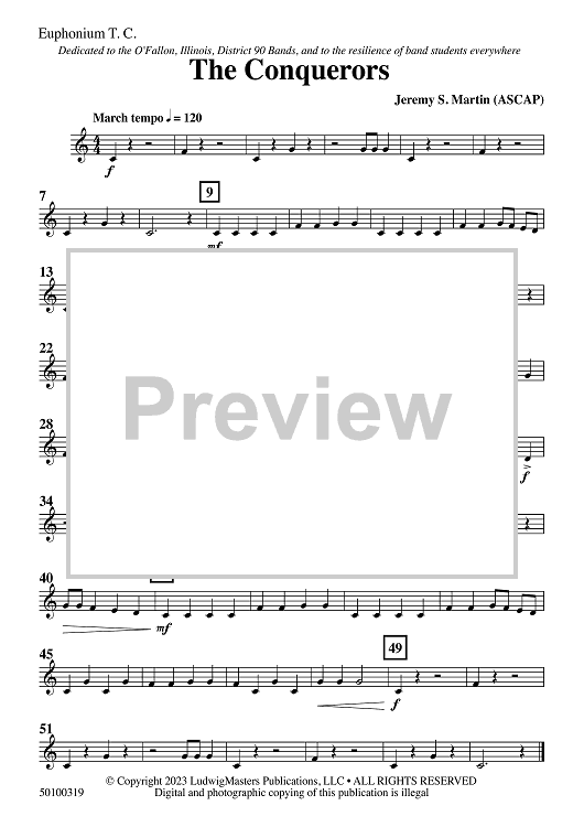 Digital Sheet Music for The Conquerors - Euphonium TC by Jeremy S. Martin scored for Concert Band; id:509784