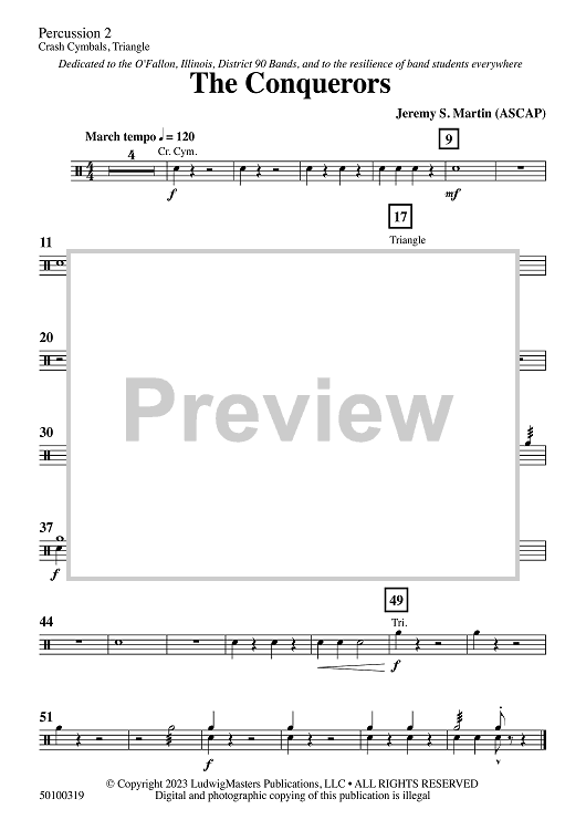 Digital Sheet Music for The Conquerors - Percussion 2 by Jeremy S. Martin scored for Concert Band; id:509790