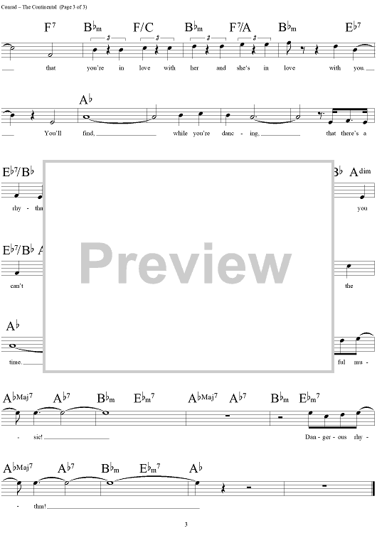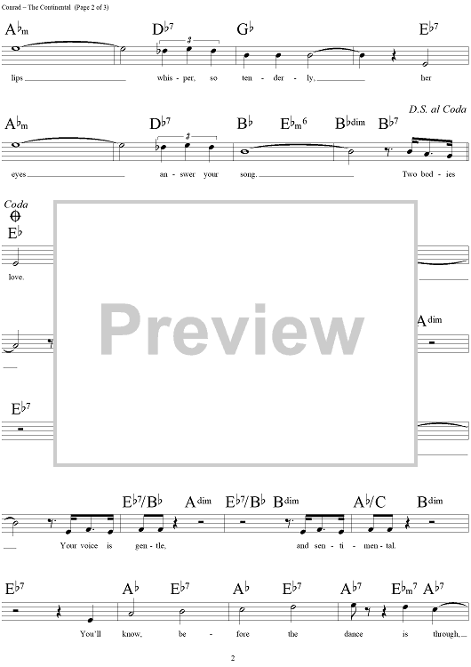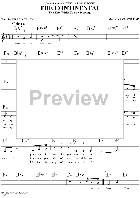 Digital Sheet Music for The Continental (You Kiss While You're Dancing) by Ginger Rogers, Herb Magidson, Con Conrad scored for Lead Sheet; id:112118