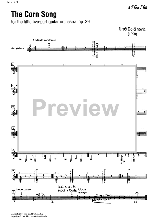 Digital Sheet Music for The Corn Song Op.39 - Guitar 4 by , Uros Dojcinovic scored for 5 Guitars; id:329749