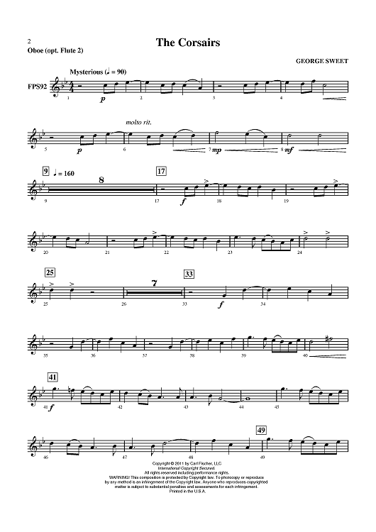 Digital Sheet Music for The Corsairs - Oboe (Opt. Flute 2) by George Sweet scored for Concert Band; id:420468