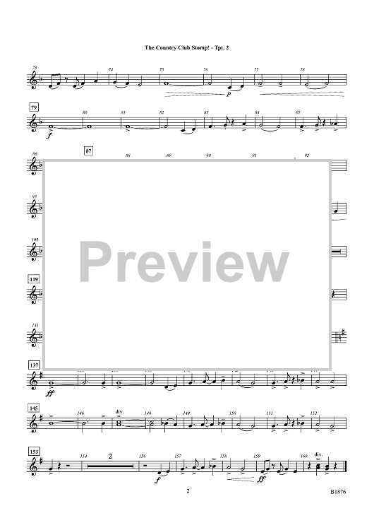 Digital Sheet Music for The Country Club Stomp! - Bb Trumpet 2 by JaRod Hall scored for Concert Band; id:498772