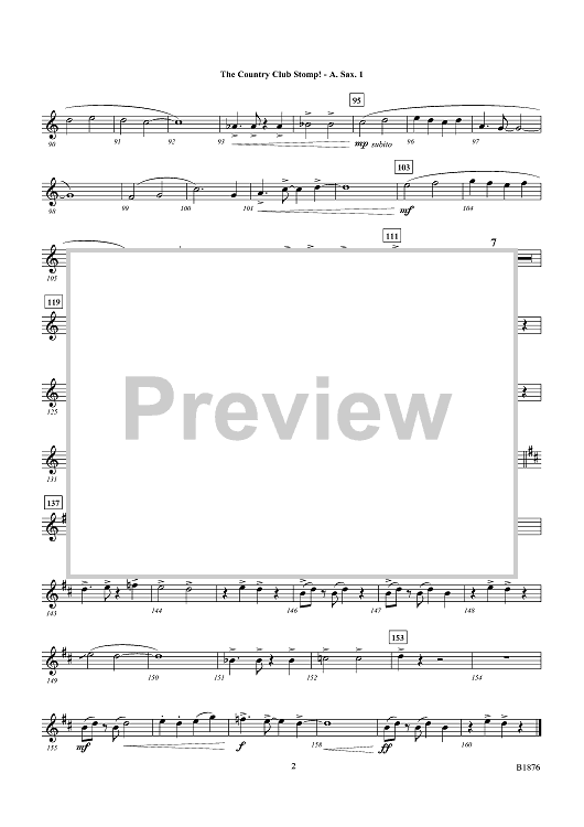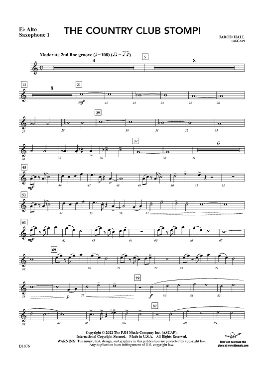 Digital Sheet Music for The Country Club Stomp! - Eb Alto Sax 1 by JaRod Hall scored for Concert Band; id:498768