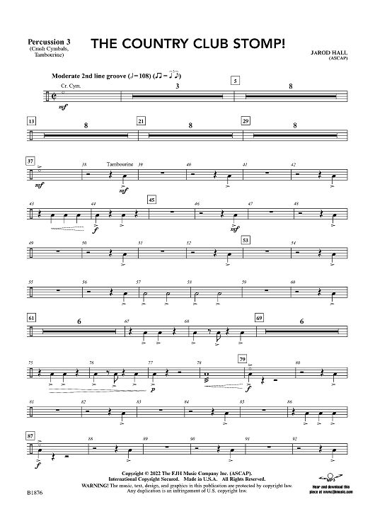 Digital Sheet Music for The Country Club Stomp! - Percussion 3 by JaRod Hall scored for Concert Band; id:498784