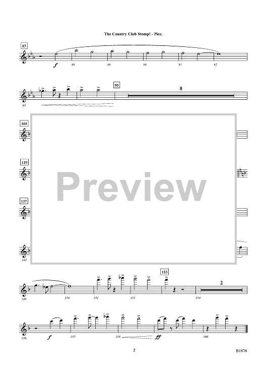 Digital Sheet Music for The Country Club Stomp! - Piccolo by JaRod Hall scored for Concert Band; id:498760