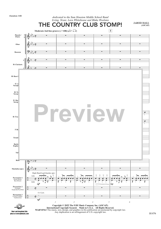 Digital Sheet Music for The Country Club Stomp! - Score by JaRod Hall scored for Concert Band; id:498759