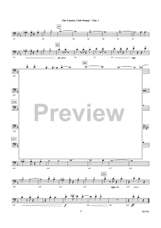 Digital Sheet Music for The Country Club Stomp! - Trombone 1 by JaRod Hall scored for Concert Band; id:498774