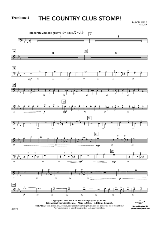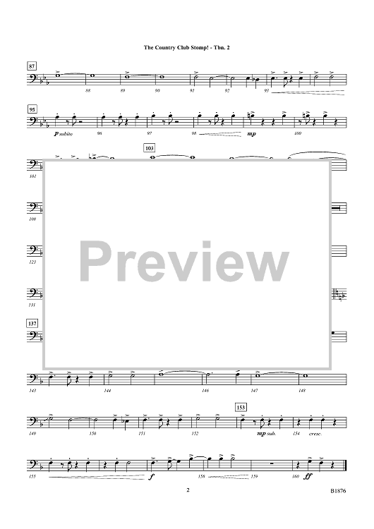 Digital Sheet Music for The Country Club Stomp! - Trombone 2 by JaRod Hall scored for Concert Band; id:498775