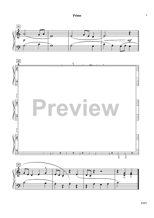 This one piano, four hands jaunty ensemble will be loved by all the cowboys and cowgirls in your studio! Written in an ABA form, this piece starts off in C Major and contains a short B section in A minor. The sections are nicely contrasted, and the piece contains an array of articulations to enhance the spirit of the piece.