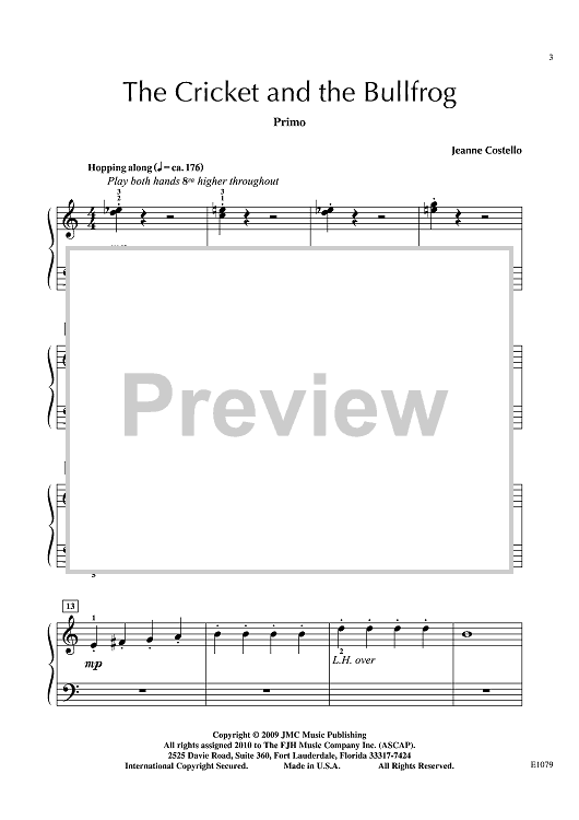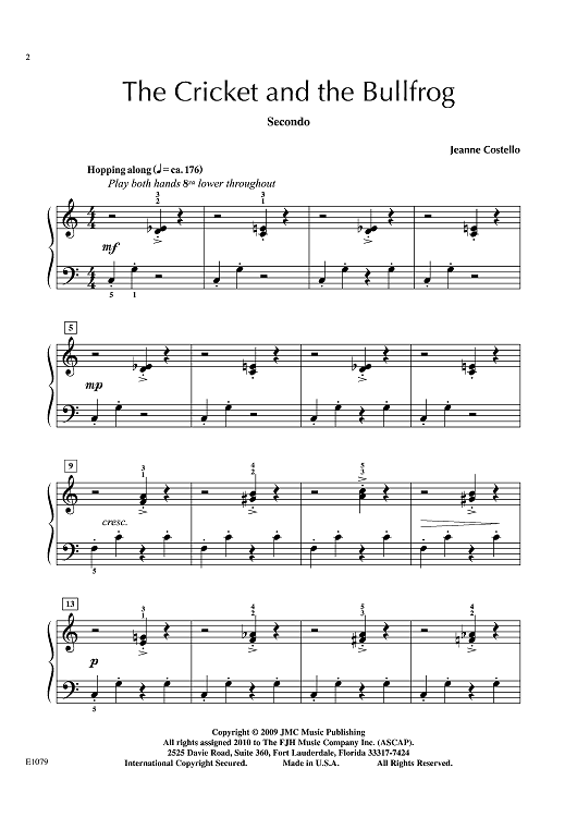 "The Cricket and the Bullfrog" Sheet Music by Jeanne Costello