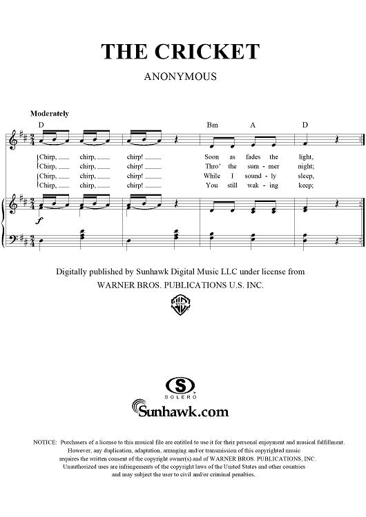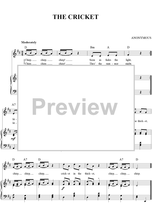 Digital Sheet Music for The Cricket by Unknown Writer scored for Piano/Vocal/Chords; id:277618