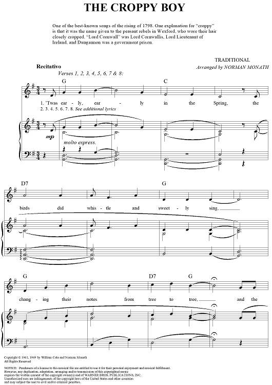 Digital Sheet Music for The Croppy Boy by Norman Monath, Traditional scored for Piano/Vocal/Chords; id:260844