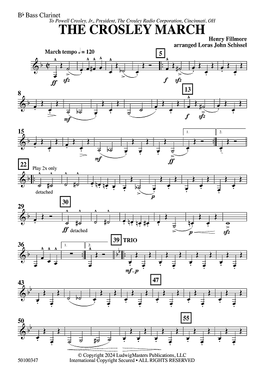Digital Sheet Music for The Crosley March - Bb Bass Clarinet by Henry Fillmore, Loras John Schissel scored for Concert Band; id:505019