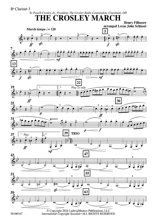 Digital Sheet Music for The Crosley March - Bb Clarinet 3 by Henry Fillmore, Loras John Schissel scored for Concert Band; id:505017