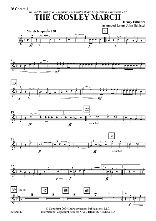 Digital Sheet Music for The Crosley March - Bb Cornet 1 by Henry Fillmore, Loras John Schissel scored for Concert Band; id:505024